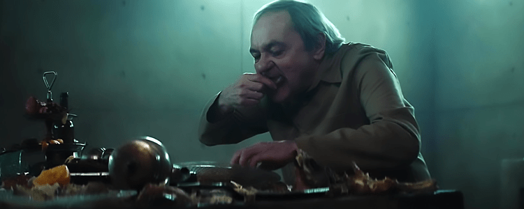 The Platform, or El Hoyo as it was originally titled, takes place in a vertical prison. The prison is impossibly large with over 350 floors and each floor can hold 2 people. There’s a giant hole in the middle of every floor and once a day the titular platform slowly descends through the building. At level 1 the platform is loaded with food, overflowing with cakes and meats and all the good stuff but the further down it goes, the less there is until eventually there isn’t even a bone left to chew on. On one of the many floors is a man named Goreng (Ivan Massagué) who actually signed up voluntarily so he could use the prison as a way to help him quit smoking and now he wants to tear apart this system from the inside.