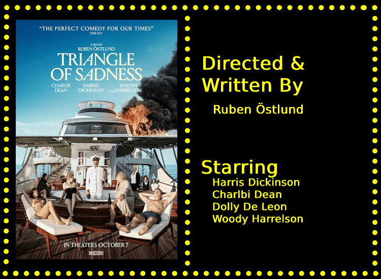 Triangle of Sadness follows influencer/models Carl (Harris Dickinson) and Yaya (Charlbi Dean) who have been invited on a trip on a superyacht in exchange for some promotion on their socials. This puts them on the same level as a bunch of incredibly wealthy people, from weapons salespeople to fertilizer tycoons, who all revel in the power that their wealth has given them. This power is exerted mostly over the staff of the boat who have specific orders to do absolutely anything that the passengers want, even if that thing could potentially put someone in danger. Naturally, because what else would happen when stupid wealthy people are in charge, things go horribly wrong and now the wealthy might need to rely on the poor people they’ve abused to help save them since they can’t seem to save themselves.
