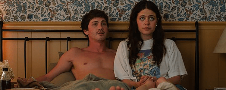 Oh, Hi follows a young couple on a little retreat together. After dating for 4 months, Iris (Molly Gordon) and her boyfriend Isaac (Logan Lerman) have rented out a charming little place out in the country where they can just unwind, relax and have kinky sex in a brand new location. To help with that kinky sex, turns out the place that they’ve rented happens to have a few sex toys hidden about the place including a couple of restraints for the bed and so, in a moment of spontaneity, Isaac offers to be restrained to the bed for part of their kinktastic fun… and then, just before he’s due to be untied, reveals he never thought of him and Iris as an exclusive couple and that they were just two 20-somethings having fun. Iris, however, thought they were not only exclusive but in a happy and long term relationship. Of course, she could handle this through a calm conversation, but instead decides to leave Isaac tied to the bed for 12 hours so he has enough time to realise he actually does love her. So begins the elaborate, farcical attempt to force a man to have feelings for someone who is currently kidnapping him.